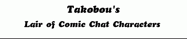 ![]() | Page: HOME | 2 | 3 | 4 These web pages contain restored comic characters created by Takobou. C:\Program Files\Chat\COMICART |