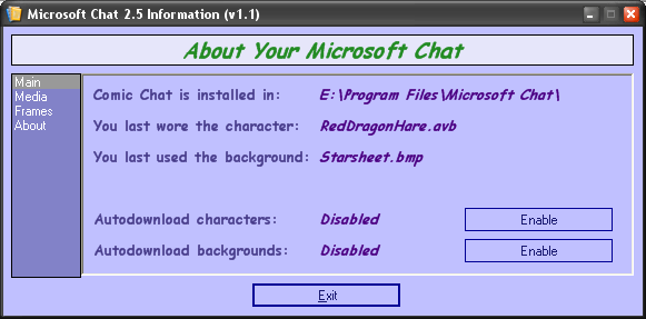 Requirements - Microsoft Comic Chat 2.5 (Installed) |